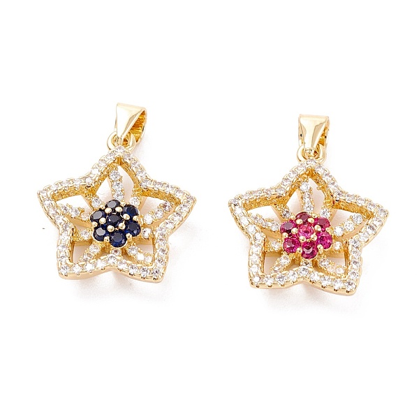 PandaHall Brass Inlaid Cubic Zirconia Charms, with Brass Snap on Bails, Real 18K Gold Plated, Nickel Free, Rectangle with Star, Clear...