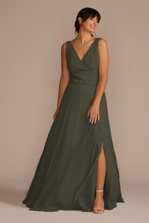 Celebrate DB Studio Long Chiffon Surplice Tank Bridesmaid Dress in Evergreen Size: 2 David's Bridal