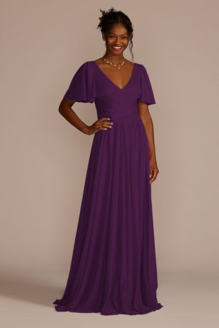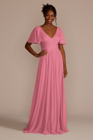 Celebrate DB Studio Crisscross Mesh Flutter Sleeve Bridesmaid Dress in Rose Pink Size: 26 David's Bridal